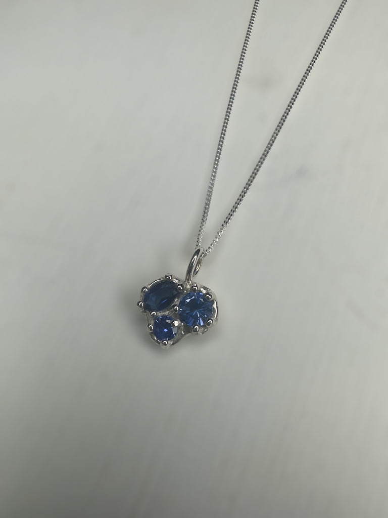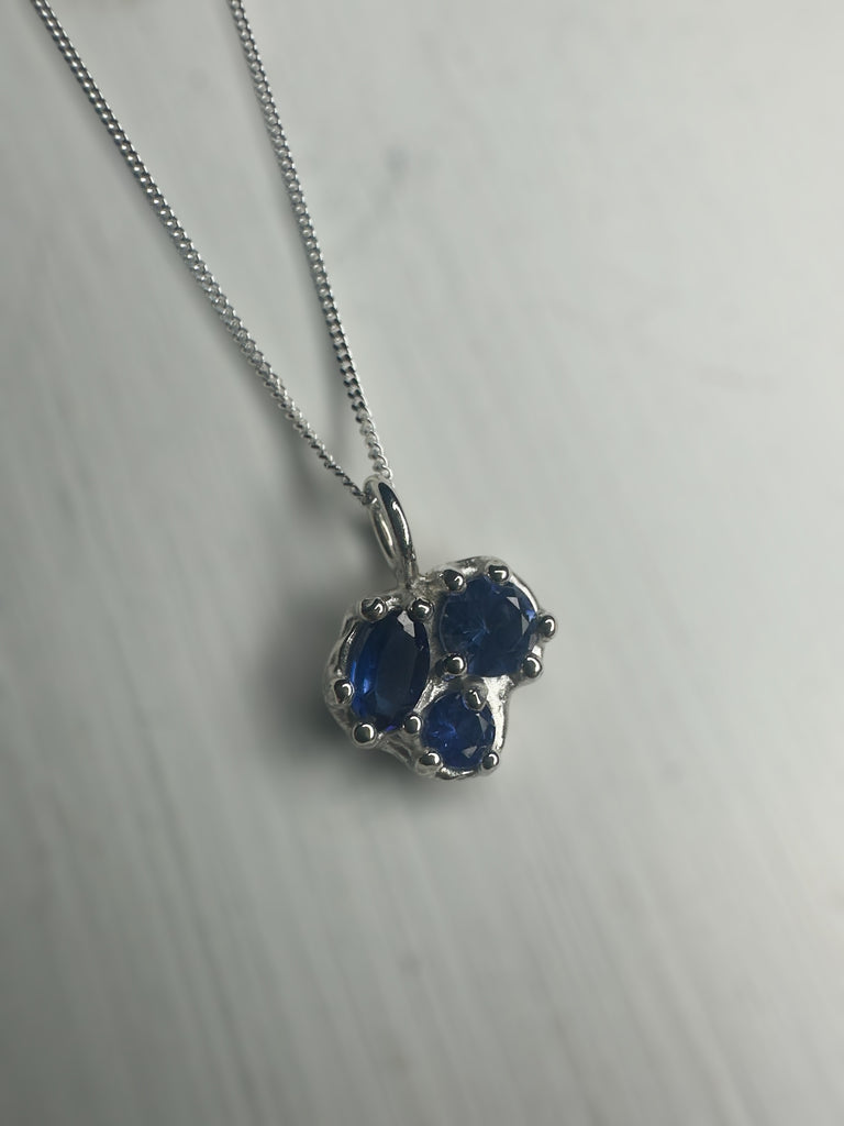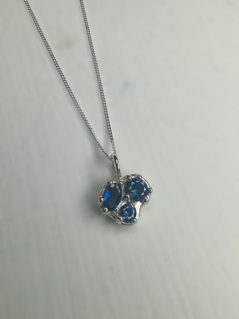 One of a kind deep blue lab sapphire confetti pendant in sterling silver.  Part of our latest colourful Christmas collection. Complete with our signature Molten organic surface texture and organic claw setting.  The perfect treat to yourself, gift for someone special.