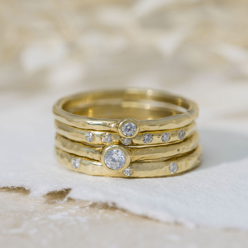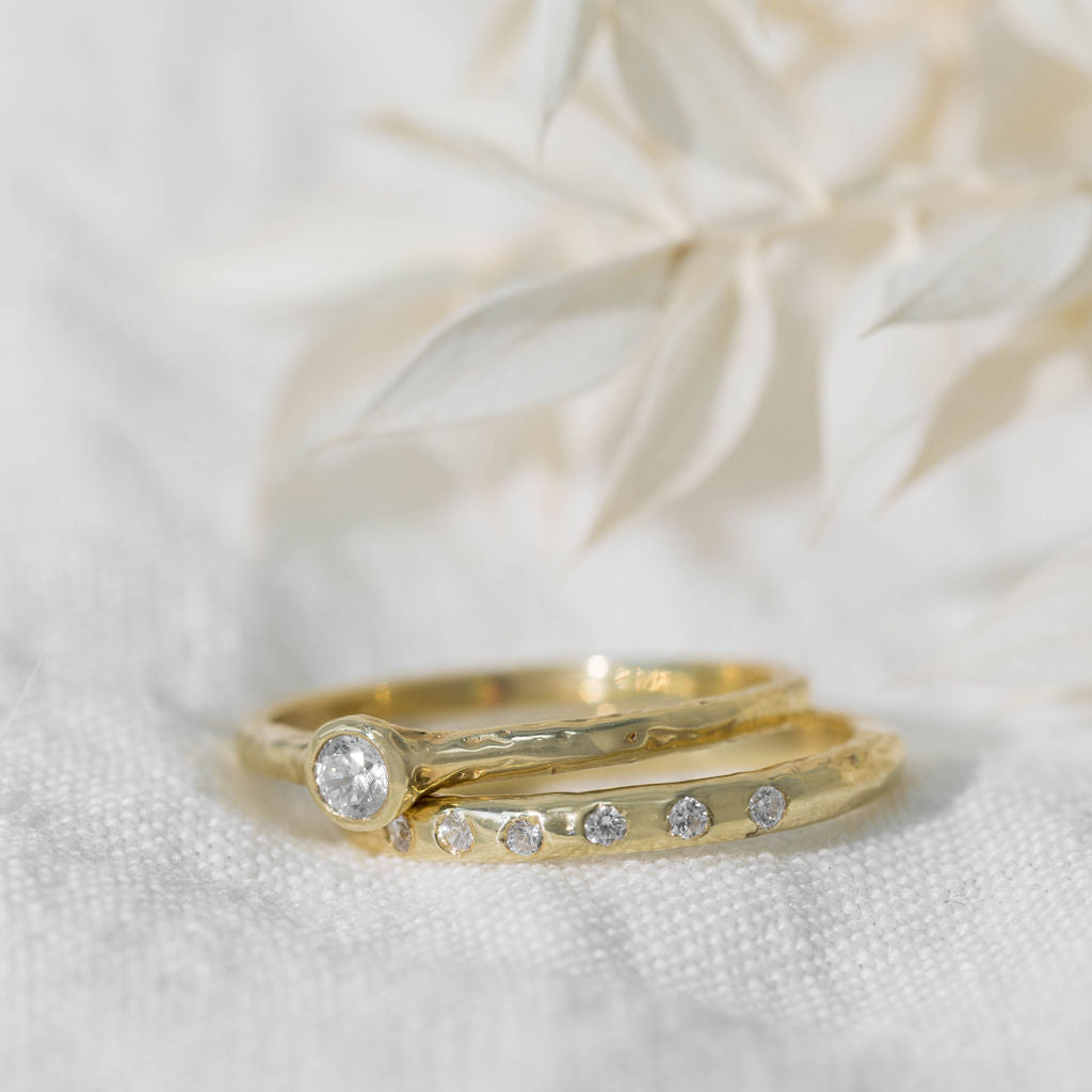 Our Everyday Diamond 1/3 Eternity ring is the perfect addition to your daily ring stack. We've used lab grown diamonds in our new collection for maximum sparkle and minimum environmental impact. Soft organic texture and delicate flush set diamonds makes for a wearable and stackable eternity style ring. Perfect for everyday accessorising but also makes a great choice for an eternity or wedding band.