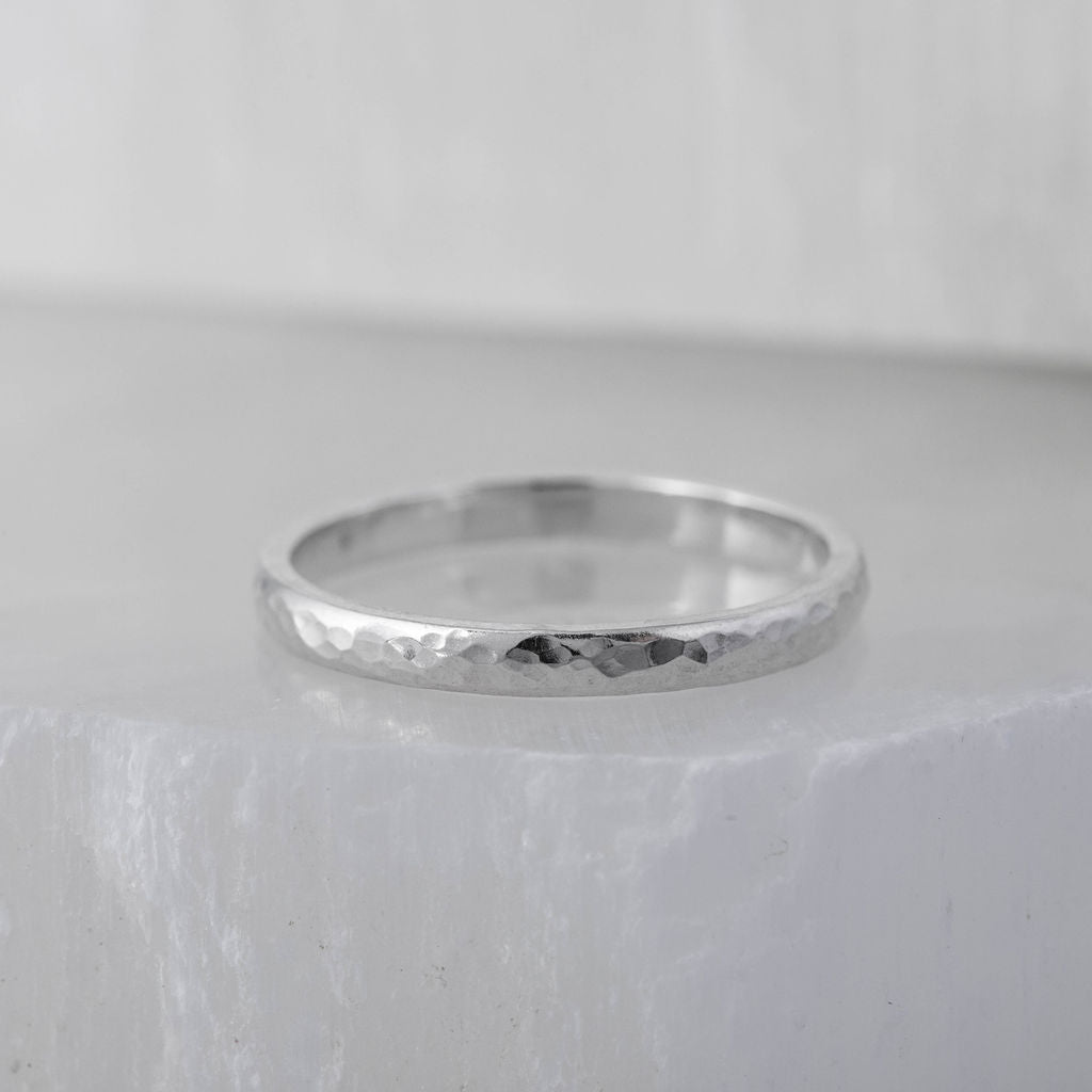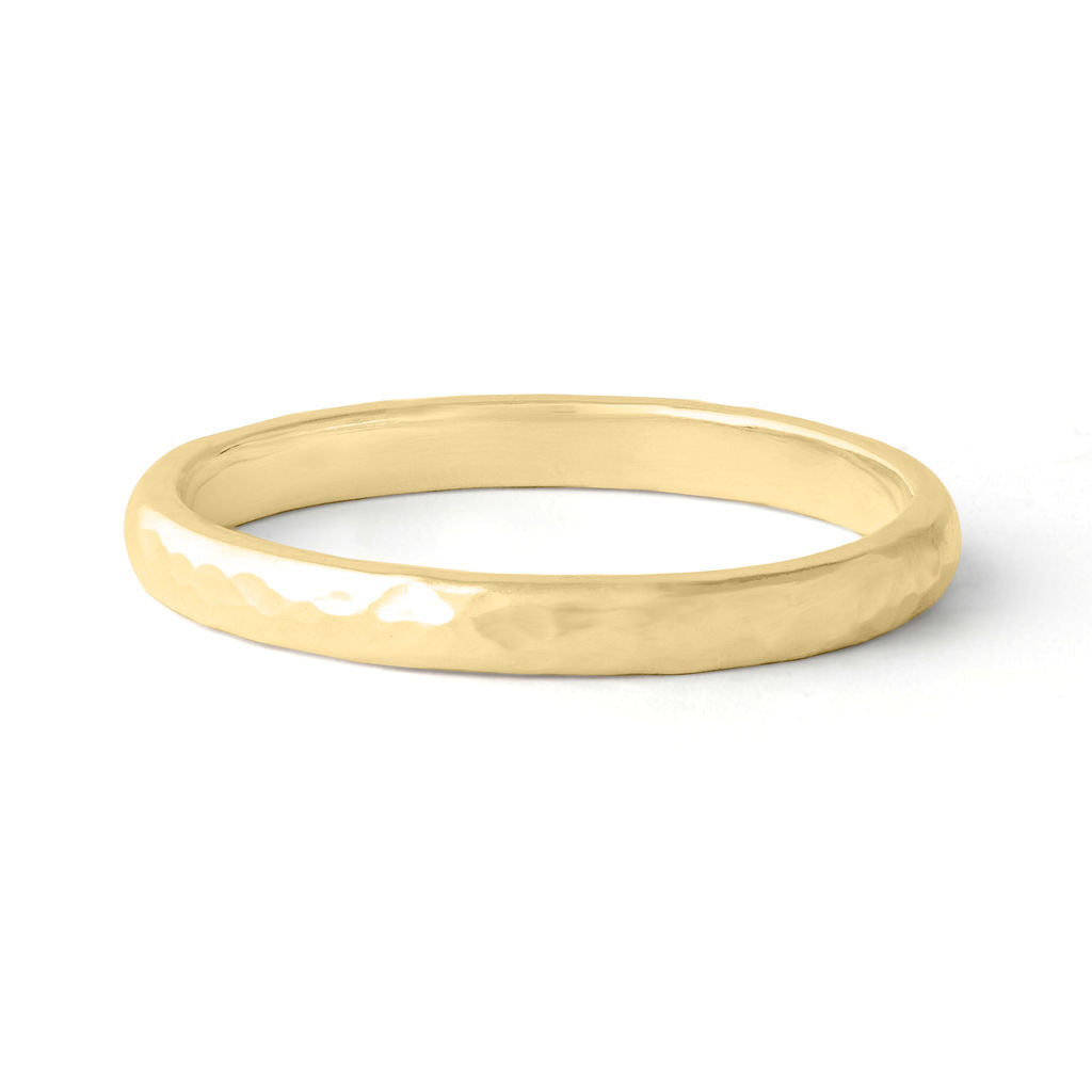 Hammered D-shaped 2mm wedding band. A classic and timeless design with extra added sparkle. Each ring is hammered by hand to create a delicate and subtle finish.