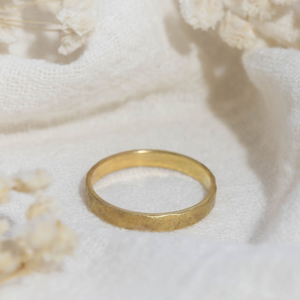 Hammered wedding band in 3mm width with frosted texture effect. The perfect unisex band, with subtle texture and satin effect finish. Perfect for those who want an understated alternative to high shine metal.